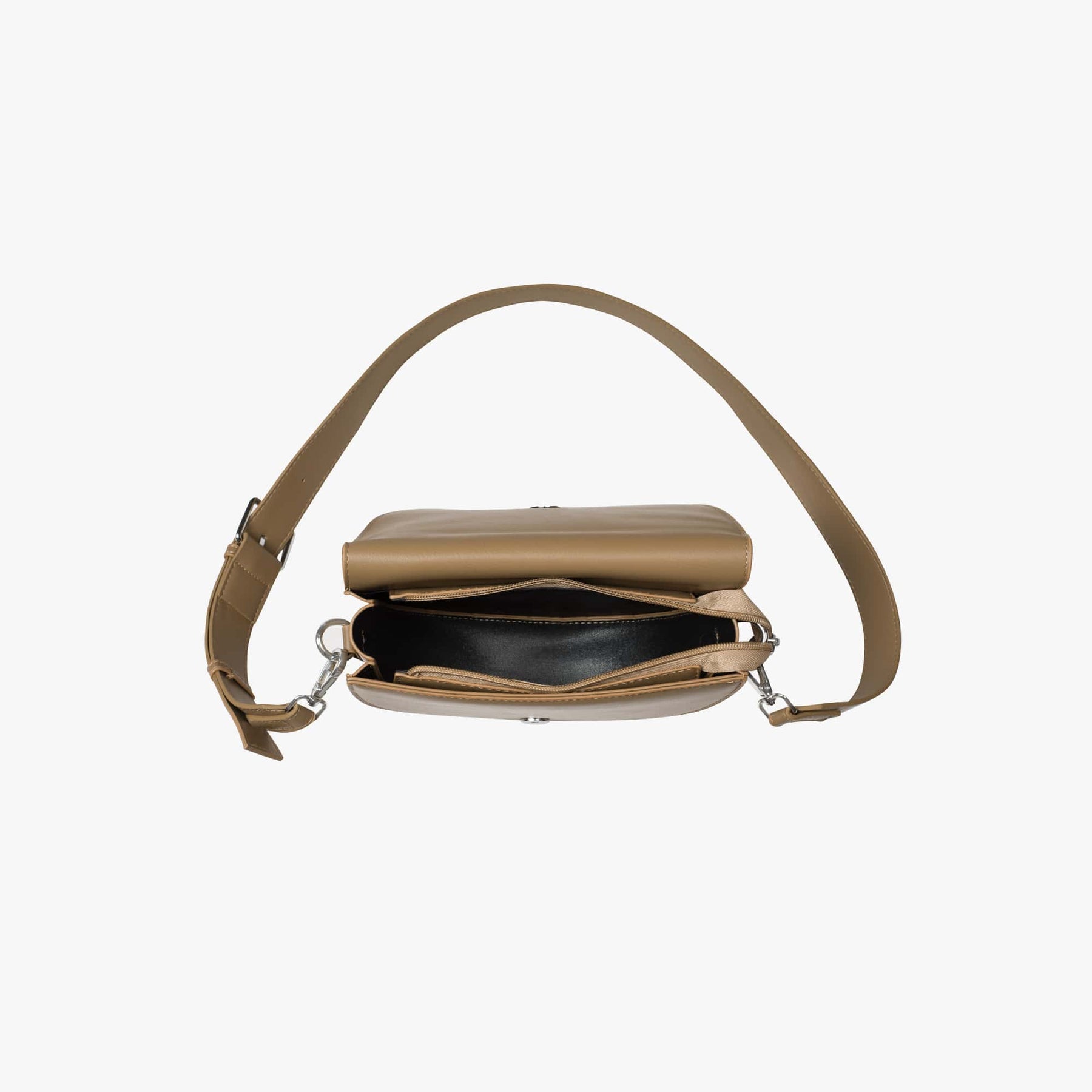Discover “Virelle”, a simple yet elegant crossbody bag featuring a timeless half-moon silhouette. Crafted from our Vegan Leather, it opens to a zippered main compartment spacious enough to hold your daily essentials. The adjustable strap ensures a perfect fit for your style and comfort. Dress it up with a coat or keep it casual with jeans — the choice is yours. Perfect for any occasion.